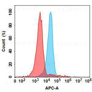 Figure 1. MASP2 protein is highly expressed on the surface of Jurkat cell membrane. Flow cytometry analysis with 15 μg/mL Anti-MASP2(narsoplimab biosimilar) mAb (Blue histogram) or isotype control mAb (Red histogram) on Jurkat cells.