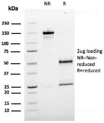Fig. 1: SDS-PAGE Analysis Purified MCAM Mouse Monoclonal Antibody (MCAM/3179). Confirmation of Purity and Integrity of Antibody.