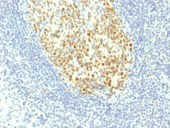 Fig. 1: Formalin-fixed, paraffin-embedded human Tonsil stained with MCM7 Mouse Monoclonal Antibody (MCM7/1467).