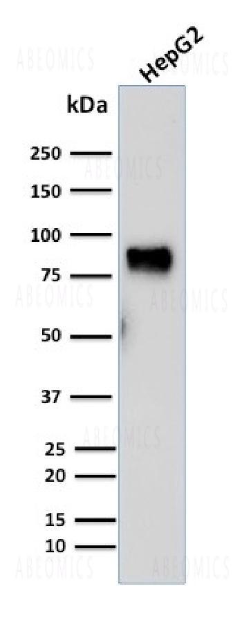 Fig. 1: Western Blot Analysis of human HepG2 cell lysate using MDM2 Mouse Monoclonal Antibody (SMP14).