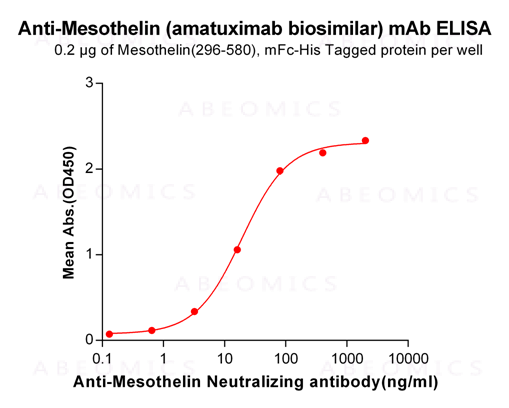 Figure-1: ELISA plate pre-coated by 2µg/ml (100 µl/well) Human Mesothelin, mFc-His tagged protein can bind Anti-Mesothelin Neutralizing antibody in a linear range of 3.2-80.0 ng/ml.
