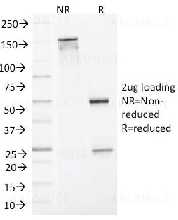 Fig. 1: SDS-PAGE Analysis Purified MLH1 Mouse Monoclonal Antibody (MLH1/1324). Confirmation of Integrity and Purity of Antibody