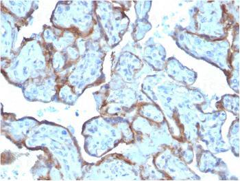 Fig. 1: Formalin-fixed, paraffin-embedded human Placenta stained with MMP3 Mouse Monoclonal Antibody (MMP3/2806).