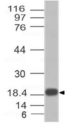 Figure-1: Western Blot analysis of Monkey Pox L1R. Anti-Monkey Pox L1R antibody (11-2029) was used at 0.1 µg/ml on Recombinant protein.