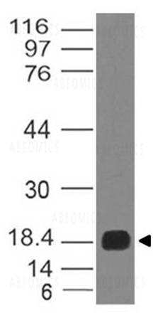 Figure-1: Western Blot analysis of Monkey Pox A33R. Anti-Monkey Pox A33R antibody (11-2031) was used at 0.1 µg/ml on Recombinant protein.