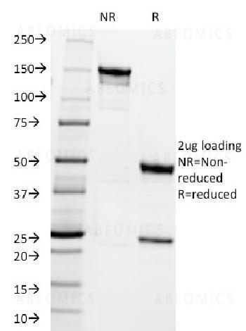 Fig. 1: SDS-PAGE Analysis Purified MRP1 Mouse Monoclonal Antibody (MRP1/1344). Confirmation of Integrity and Purity of Antibody.