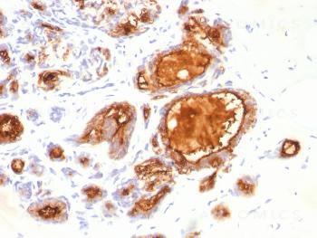 Fig. 1: Formalin-fixed, paraffin-embedded human Breast Carcinoma stained with MUC1 Mouse Monoclonal Antibody (115D8).