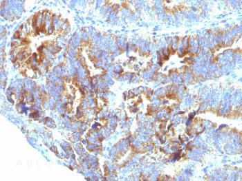 Fig. 1: Formalin-fixed, paraffin-embedded human Colon Carcinoma stained with MUC1 / CA15-3 / EMA Mouse Monoclonal Antibody (SPM493).