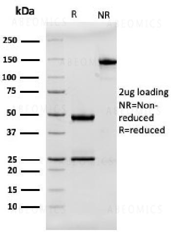 Fig. 1: SDS-PAGE Analysis Purified MUC2 Recombinant Mouse Monoclonal Antibody (rMLP/842). Confirmation of Purity and Integrity of Antibody.