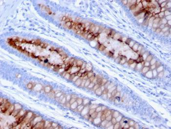 Fig. 1: Formalin-fixed, paraffin-embedded human Colon Carcinoma stained with MUC4 Mouse Monoclonal Antibody (MUC4/3105).