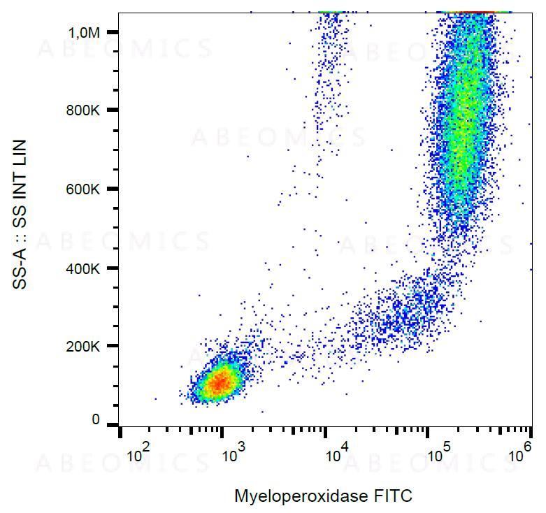 Figure 1: Intracellular staining of human peripheral blood with anti-myeloperoxidase (MPO421-8B2) FITC.