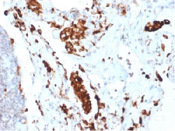 Figure 1: Formalin-fixed, paraffin-embedded human Lung Adenocarcinoma stained with Napsin A Rabbit Recombinant Monoclonal Antibody (NAPSA/1865R).