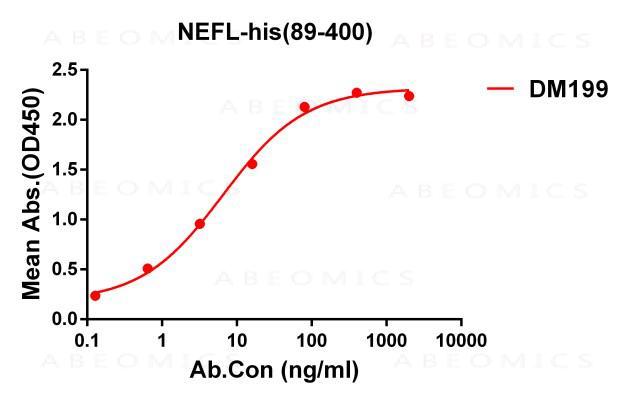 Figure 1. ELISA plate pre-coated by 1 μg/ml (100 μl/well) Human NEFL(89-400) protein, His tagged protein can bind Rabbit anti-NEFL(89-400) monoclonal antibody(clone: DM199) in a linear range of 1-100 ng/ml.