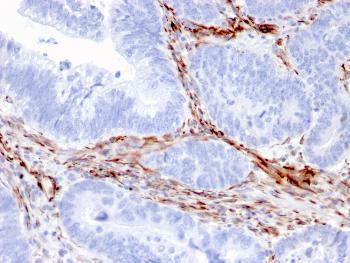 Fig.1: Formalin-fixed, paraffin-embedded human Colon Carcinoma stained with Nestin Mouse Monoclonal Antibody (NES/2911).