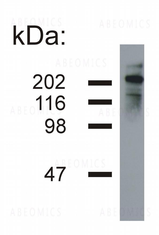 Figure 1: Western blotting analysis of neurofilament heavy protein in porcine brain lysate (reducing conditions) by mouse monoclonal NF-05.