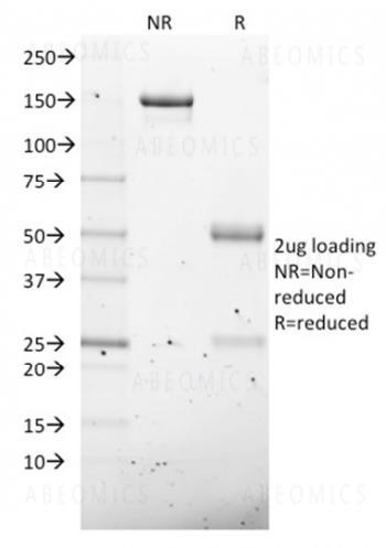 Fig. 1: SDS-PAGE Analysis Purified NKX2.8 Mouse Monoclonal Antibody (NKX28/2547). Confirmation of Purity and Integrity of Antibody.