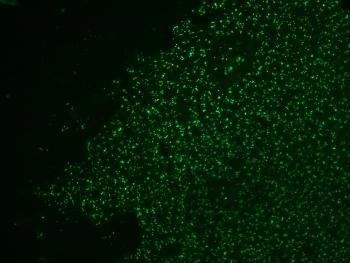 Fig. 1: Formalin-fixed, paraffin-embedded human Colon Carcinoma stained with CF488-labeled Nucleolin Monoclonal Antibody (NCL/902).
