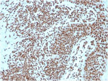 Fig. 1: Formalin-fixed, paraffin-embedded human Basal Cell Carcinoma stained with Nucleophosmin-Monospecific Mouse Monoclonal Antibody (NPM1/3287).