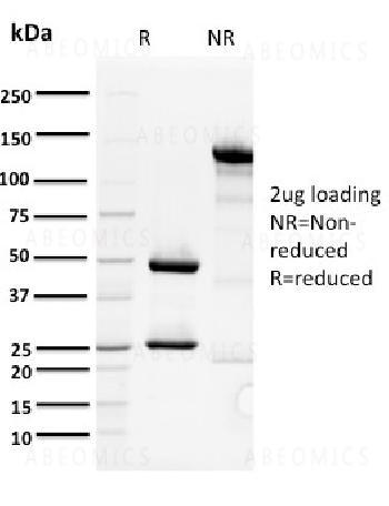 Fig. 1: SDS-PAGE Analysis Purified ORC1 Mouse Monoclonal Antibody (7F6/1). Confirmation of Purity and Integrity of Antibody.