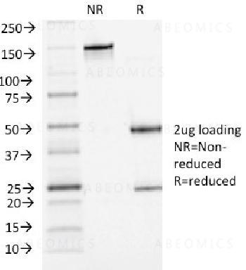 Fig.1: SDS-PAGE Analysis Purified P-Cadherin Mouse Monoclonal Antibody (6A9). Confirmation of Integrity and Purity of Antibody.