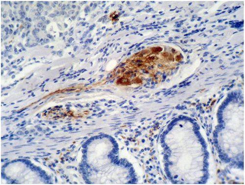 Figure 1 : Immunohistochemistry staining of colon carcinoma (paraffin-embedded sections) with anti-p21 (WA-1).
