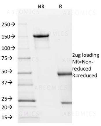Fig.1: SDS-PAGE Analysis Purified p21 Mouse Monoclonal Antibody (AC8). Confirmation of Integrity and Purity of Antibody.