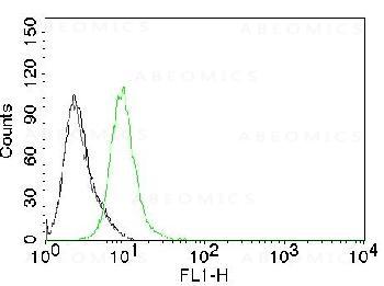 Fig.1: Flow Cytometry of human p27 on Jurkat cells. Black: cells alone; Grey: Isotype Control; Green: CF488-labeled p27 Monoclonal Antibody (KIP1/769).