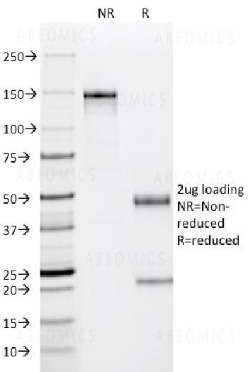 Fig. 1: SDS-PAGE Analysis Purified p53 Mouse Monoclonal Antibody (PAb122). Confirmation of Purity and Integrity of Antibody.