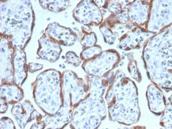 Fig. 1: Formalin-fixed, paraffin-embedded human Placenta stained with PAPP-A Mouse Monoclonal Antibody (PAPPA/2717).