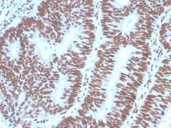 Fig. 1: Formalin-fixed, paraffin-embedded human Colon Carcinoma stained with PAX2 Mouse Monoclonal Antibody (PAX2/1104).