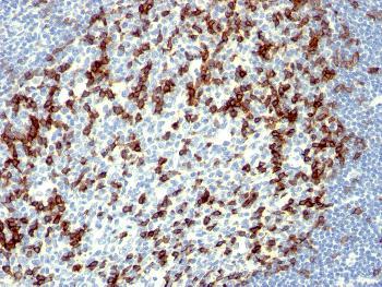 Fig. 1: Formalin-fixed, paraffin-embedded human Tonsil stained with PD1 (CD279) Monoclonal Antibody (NAT105).