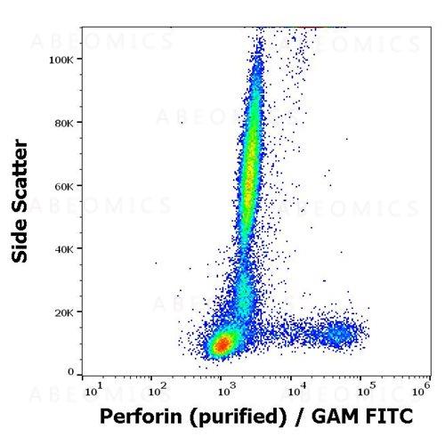Figure 1: Flow cytometry intracellular staining pattern of human peripheral whole blood stained using anti-human Perforin (dG9) purified antibody