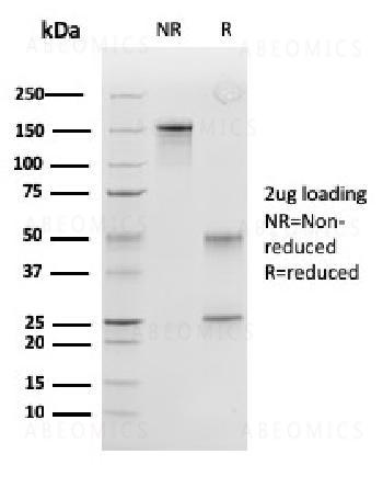 Fig.1: SDS-PAGE Analysis Purified Peroxiredoxin 4 Monoclonal Antibody (CPTC-PRDX4-2). Confirmation of Purity and Integrity of Antibody.