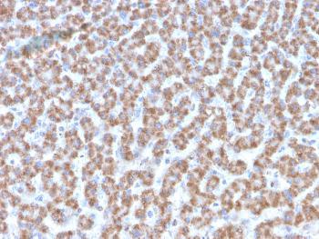 Fig. 1: Formalin-fixed, paraffin-embedded human Liver stained with Prohibitin Mouse Monoclonal Antibody (PHB/3193).