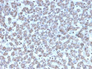 Fig. 1: Formalin-fixed, paraffin-embedded human Liver stained with Prohibitin Mouse Monoclonal Antibody (PHB/3194).