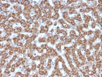 Fig. 1: Formalin-fixed, paraffin-embedded human Liver stained with Prohibitin Mouse Monoclonal Antibody (PHB/3226).