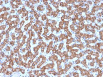 Fig. 1: Formalin-fixed, paraffin-embedded human Liver stained with Prohibitin Mouse Monoclonal Antibody (PHB/3227).