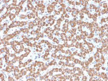 Western Blot (1-2ug/ml); Immunohistochemistry (Formalin-fixed) (1-2ug/ml for 30 minutes at RT)(Staining of formalin-fixed tissues requires heating tissue sections in 10mM Tris with 1mM EDTA, pH 9.0, for 45 min at 95°C followed by cooling at RT for 20 minutes);