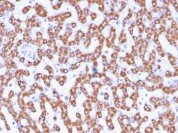 Fig. 1: Formalin-fixed, paraffin-embedded human Liver stained with Prohibitin Mouse Monoclonal Antibody (PHB/3230).