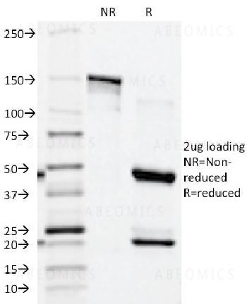 Fig. 1: SDS-PAGE Analysis Purified PSAP Mouse Monoclonal Antibody (ACPP/1339). Confirmation of Integrity and Purity of Antibody.