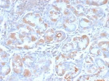 Fig. 1: Formalin-fixed, paraffin-embedded human Stomach Carcinoma stained with pS2 Rabbit Recombinant Monoclonal Antibody (TFF1/2969R).