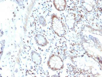 Fig. 1: Formalin-fixed, paraffin-embedded human Colon Carcinoma stained with RAD51 Mouse Monoclonal Antibody (RAD51/2702).