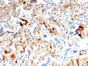 Fig. 1: Formalin-fixed, paraffin-embedded human Placenta stained with S100A4 Recombinant Mouse Monoclonal Antibody (rS100A4/1481).
