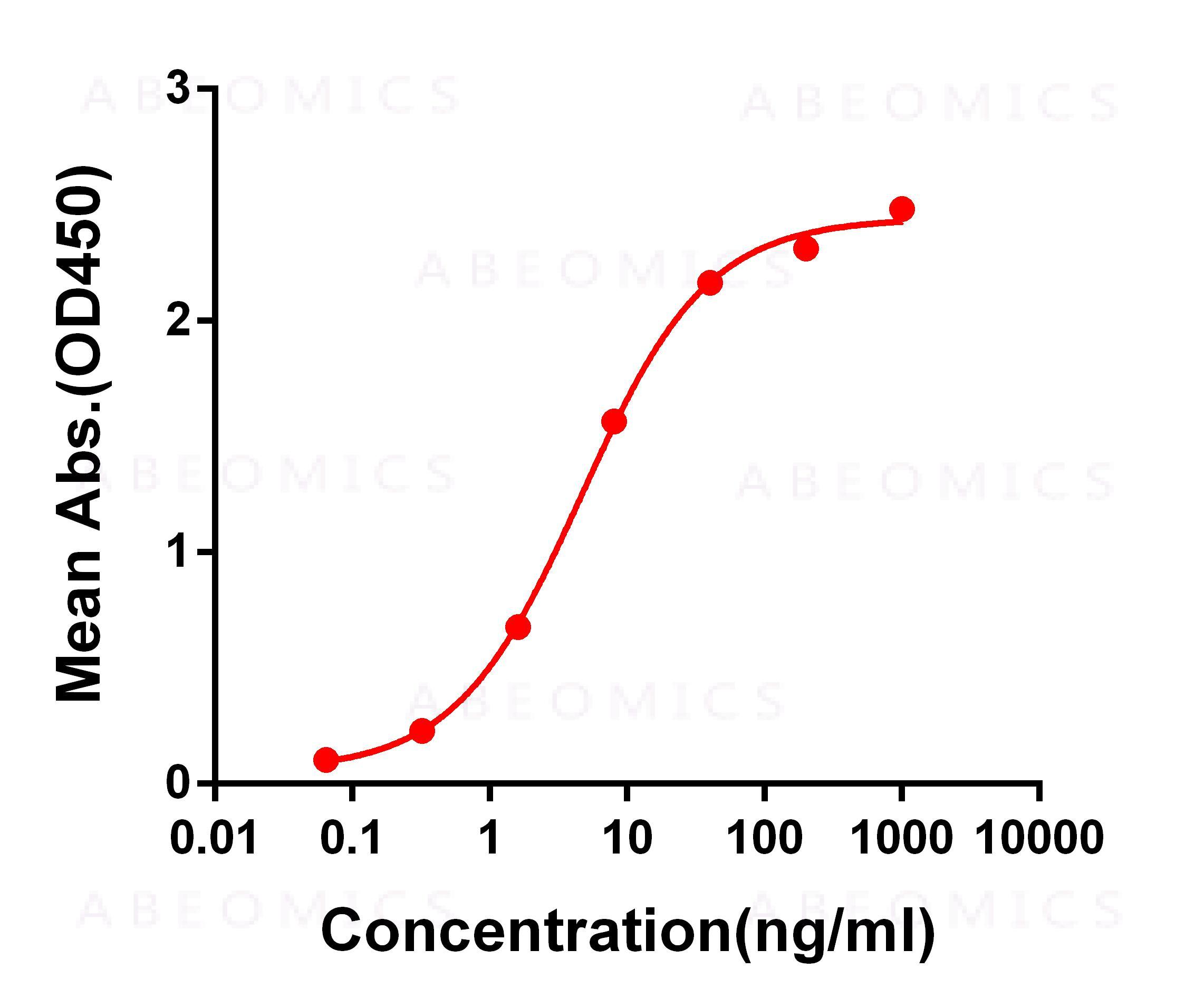 Figure 1. Elisa plate pre-coated by 2 µg/ml (100µl/well) SARS-CoV-2 RBD protein can bind Rabbit Anti-SARS-CoV-2 RBD monoclonal antibody (clone:DM54) in a linear range of 0.1-100 ng/ml.