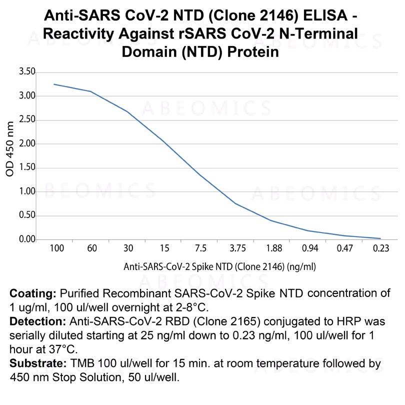 Specificity: Anti-SARS-CoV-2 Spike NTD-Biotin, clone 2146, specifically targets an epitope on the SARS-CoV-2 spike protein N-terminal domain.