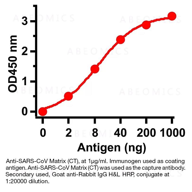 Specificity: Rabbit Anti-Human Severe Acute Respiratory Syndrome M (SARS M) recognizes Human SARS M. This polyclonal antibody was purified using affinity chromatography.