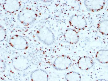 Fig. 1: Formalin-fixed, paraffin-embedded human Colon Carcinoma stained with SOX4 Mouse Monoclonal Antibody (SOX4/2540).