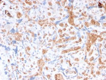 Fig. 1: Formalin-fixed, paraffin-embedded human Placenta stained with Spectrin alpha 1 Mouse Recombinant Monoclonal Antibody (rSPTA1/1832).