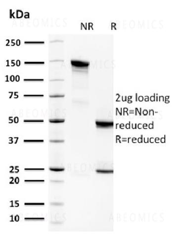 Fig. 1: SDS-PAGE Analysis Purified Spermidine Monoclonal Antibody (CPTC-SAT1-3). Confirmation of Purity and Integrity of Antibody