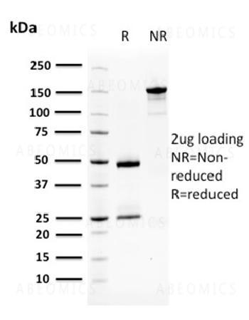 Fig. 1: SDS-PAGE Analysis Purified SqCC Antigen 1 Mouse Monoclonal Antibody (CPTC-SERPINB3-2). Confirmation of Purity and Integrity of Antibody